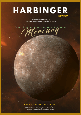 HARBI N G ERTHE MONTHLY NEWSLETTER OFAL-RASHED INTERNATIONAL SHIPPING CO., KUWAITJULY 2025W H A T ' S I N S I D E T H I S I S S U ECEO's Outlook | Shipping News | Kuwait NewsArticles | Riddle Me!! | Crossword PuzzleMe r c u r yP L A N E T S E D I T I O N