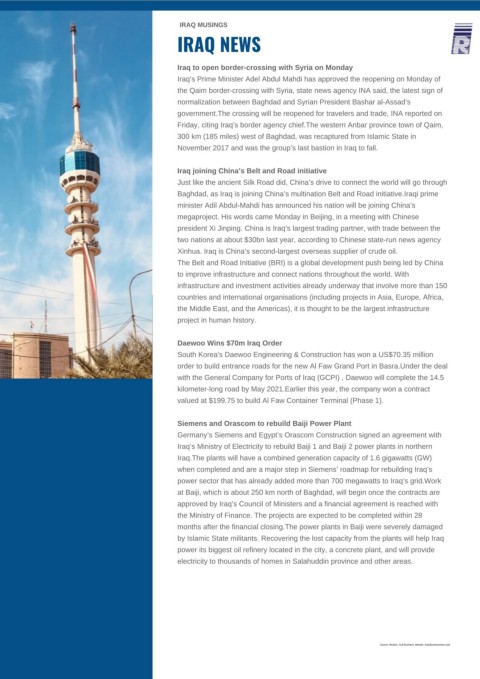 DO THE IMPOSSIBLE." Siemens and Orascom to rebuild Baiji Power Plant