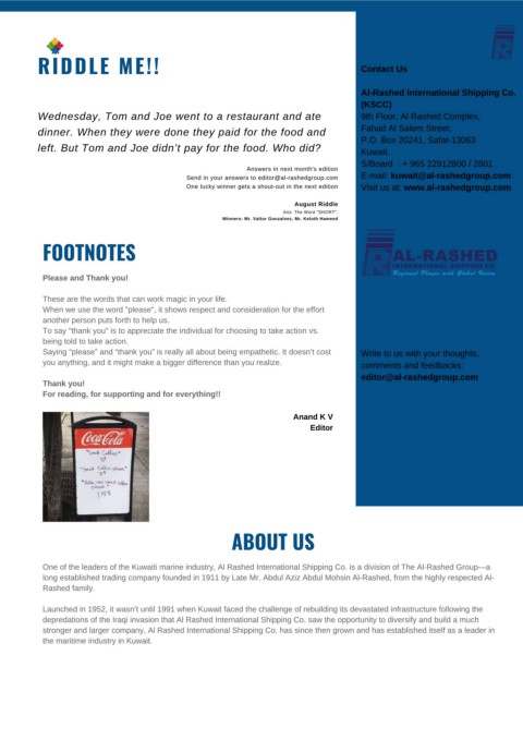 Send in your answers to editor@al-rashedgroup.com E-mail: kuwait@al-rashedgroup.com